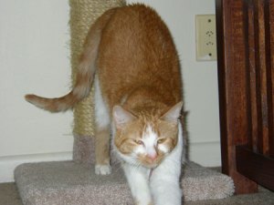Candy hops up in my lap for a little lap time of cuddling and petting. She takes to licking me, then settles down for her pets, then a little bath for herself, leaning her head over every few minutes to lick my fingers. “Ah!” I think, “She’s such a sweet, loving girl. Look how attached she is to me, look how trusting. Oh, how connected I feel to my new cat.”