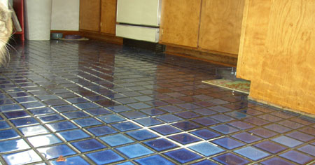 Now, the blue tile floor in the kitchen is a down-right selling point of the house (apparently). I didn’t actually notice the kitchen floor when we toured the house 3 1/2 years ago. The real estate agent commented on it right away and we’ve received many compliments on it since then. Also, at some point I realized that tile is highly prized over linoleum. I’ve never had anything but linoleum but apparently it “sucks.” Good to know.
