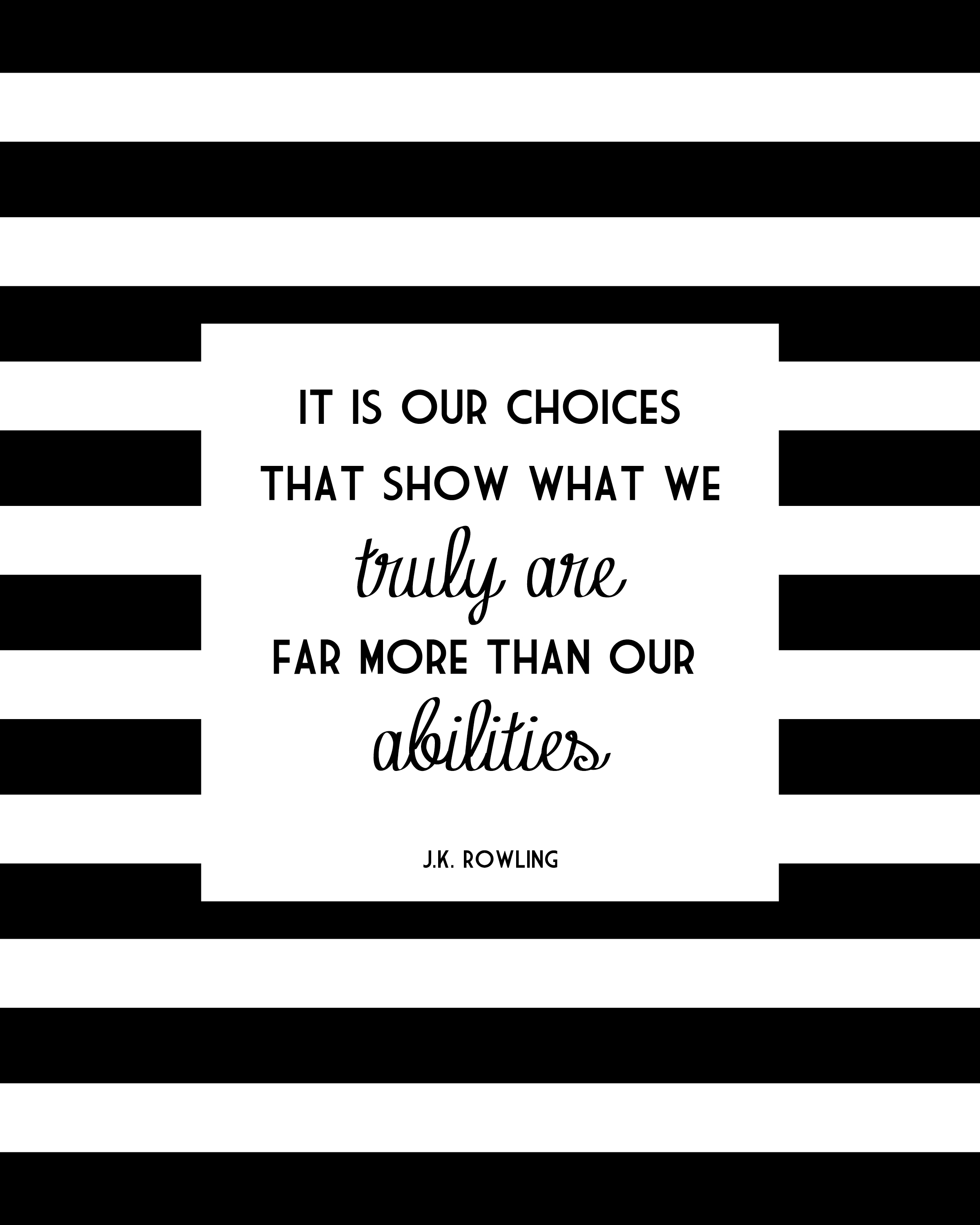 When I first read this in Harry Potter it took my breath away. I’ve judged myself on my abilities. I’ve realized that bad choices lead to consequences that you can’t control. But I had never thought to evaluate myself based on my GOOD choices. What a lovely way to look at my world.