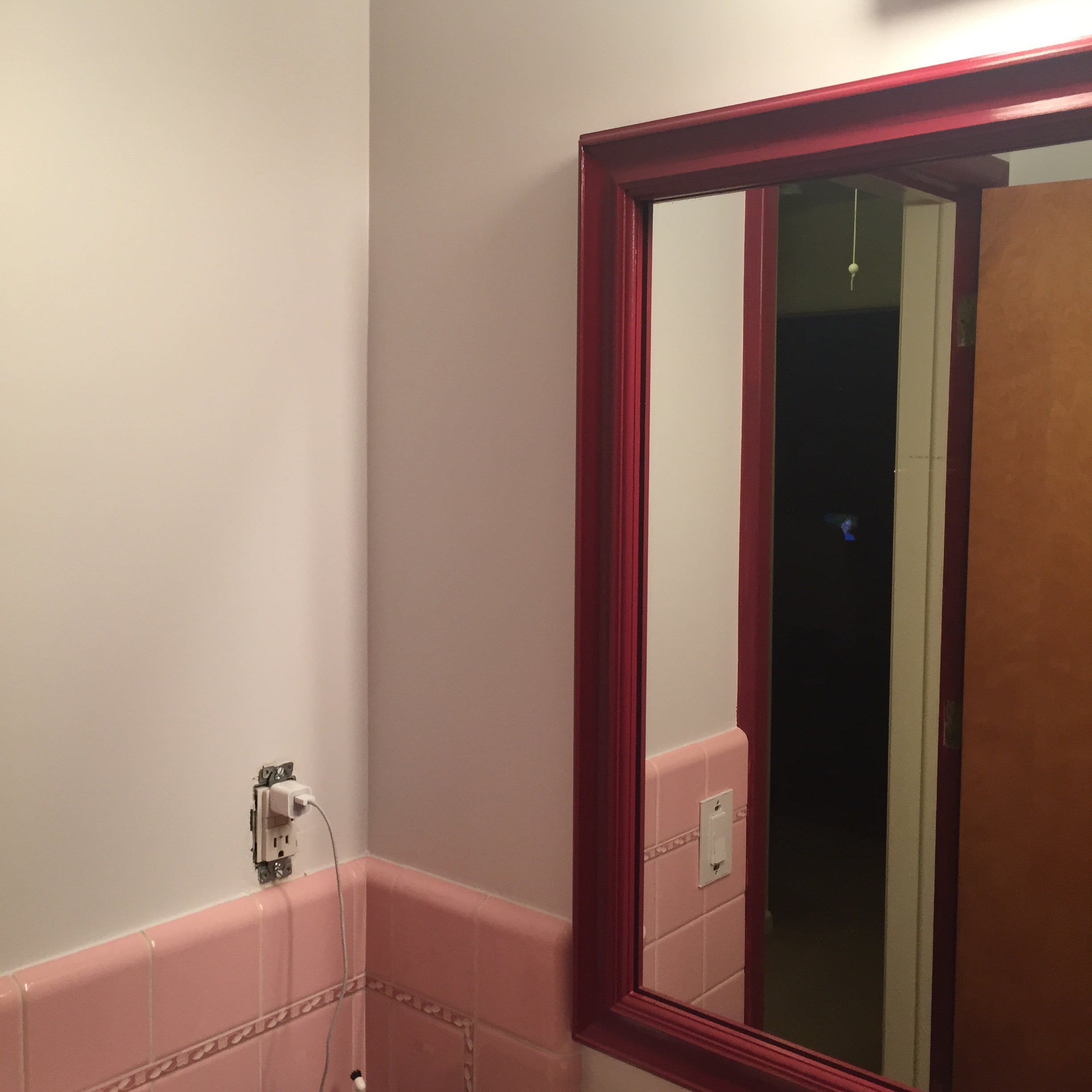 Only it wasn’t “I” it was our awesome painter who created the frame around the formerly plain mirror. Here’s a glimpse.