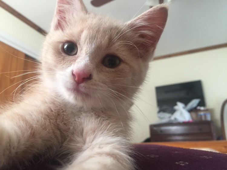 But mainly? He loves me. With the love that only a kitten can bring to your life. A simple love. A love that brings psychotic joy as they’re chewing on your slippers or phone card.